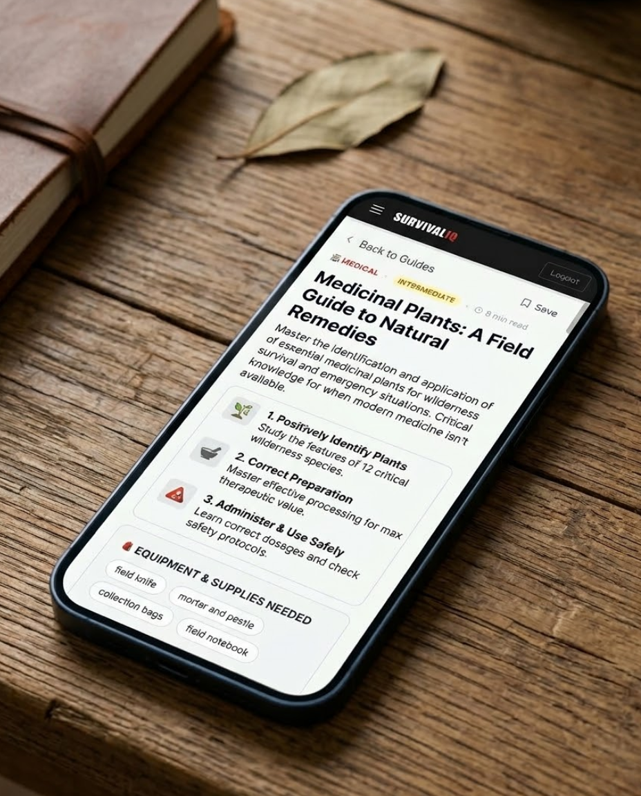 99+ guides covering water, shelter, food, medical, security, navigation, comms, and gear — written so anyone can follow them under pressure.